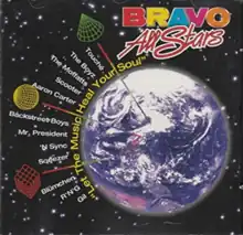 "Let the Music Heal Your Soul" is a charity record released by the supergroup Bravo All Stars on 18 May 1998. The band consisted of Touché, The Boyz, The Moffatts, Scooter, Aaron Carter, the Backstreet Boys, Mr. President, NSYNC, Sqeezer, Blümchen, R'n'G and Gil Ofarim.[1] The idea behind it was conceived by Alex Christensen, to benefit charity to the Nordoff–Robbins Music Therapy Foundation. Each artist took turns singing two lines from each verse, while all of the singers sang the chorus together. "Let the Music Heal Your Soul" reached number 36 on the UK Singles Chart in September 1998.[1] The song also reached number 60 on the Billboard Hot 100 in 1998.