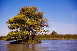 Liberty Island is a mostly-flooded island in the Sacramento–San Joaquin River Delta,[2][3][4] in Solano County, California.[5][6][7][8] It is administered by Reclamation District 2093.[9] Its coordinates are 38°17′13″N 121°40′43″W / 38.28694°N 121.67861°W[1], and the United States Geological Survey measured its elevation as 0 ft (0 m) in 1981.[1]
