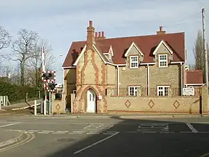 Lidlington station had a station building, one of four of the same design that are unique to this line. The station building is in a half-timbered Gothic Revival style that had been insisted upon by the 7th Duke of Bedford for stations close to the Woburn Estate. The station building is now a private home.[1]