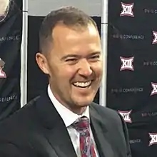Riley was hired by Bob Stoops to be the offensive coordinator for the Oklahoma Sooners on January 12, 2015.[6][7] In his first season at Oklahoma, Riley led the Sooners to the 7th ranked offense in the country while Bob Stoops led the Sooners to the College Football Playoff. He also won the Broyles Award, awarded the nation's top assistant coach. On June 7, 2017, Bob Stoops retired as head coach and Riley was named his successor.[8] In the 2017 season, Riley, anchored by Heisman winner Baker Mayfield, led his team to the Big 12 conference championship, a No. 2 ranking in the College Football Playoff ranking, and a berth in one of the CFP semifinal games at the Rose Bowl. Oklahoma went on to lose the 2018 Rose Bowl to Georgia, in double overtime, 54–48.[9] It was the first of three consecutive 12–2 seasons for the Sooners under Riley. Moreover, OU won the 2017, 2018, 2019, and 2020 Big 12 Championship Games during Riley's tenure there. As of the day he had left, Oklahoma (and Riley) had won all four of the revived Big XII Championship Games since the conference resumed them. However, the Sooners had already been eliminated from contention for the Big XII Championship Game for the 2021 season and would soon to move to a new conference.