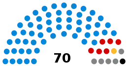 Since the last boundary changes in 2017 the county has been divided into 70 electoral divisions, each of which elects one councillor. Elections are held every four years.[17]