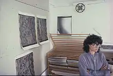 Lindroth's early photographs consisted of street photography,[22] self-portraits,[23] image/text,[24] and mixed media,[25][26] that she continued well into the 1990s.[27] In 1974 Lindroth submitted her portfolio to the Museum of Modern Art[28] for review, and John Szarkowski selected the first photograph for a permanent collection.