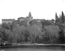 The original building that housed the hospital opened in the fall of 1905 to serve employees of the Santa Fe Railroad.[2] It had its own Jersey cows, chickens, and a garden to provide patients with the freshest milk, butter, eggs, poultry and vegetables. This original Moorish-style hospital building was designed by Charles Whittlesey and known as the Santa Fe Coast Lines Hospital. The hospital was so successful that it began expanding and the location, overlooking Hollenbeck Park was transformed into a campus.