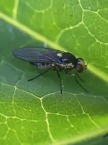 Liriomyza huidobrensis, commonly known as the pea leaf miner, is a species of insect, a fly in the family Agromyzidae. The larvae of this fly mine the leaves and stems of peas and a range of other vegetables.[1] It is also known as the serpentine leaf miner,[2] but this name is also used for a closely related species, Liriomyza brassicae.[3]