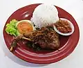 Ayam goreng Nationwide Chicken dish (fried chicken) Spiced chicken fried in coconut oil.[4]