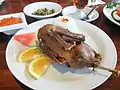 Na tinombur Tapanuli, North Sumatra Fish dish Catfish or fish that is processed mujahir burned and served with chili sauce. This dish similar to pecel lele.