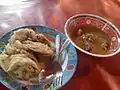 Burgo Palembang, South Sumatra Pancake A folded rice pancake served in savoury whitish coconut milk-based soup.