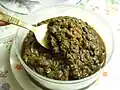Kuwah pliek u Aceh Curry dish An Acehnese gulai-like dish cooked using oilcake, melinjo, long beans, peanuts, papaya leaves, cassava leaves, kecombrang bamboo shoots, snails, and spices.