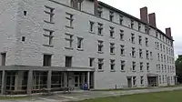Hadley Hall1969 or 1970[2]Sophomore dormitory. On the right side of the image; Milliken Hall is on the left, and Ross Tower is in the middle