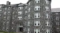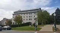 Ross TowerDormitory. Ross Tower is on the left of the image, and Milliken Hall is on the right.