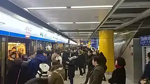 The Line 1 platform of Xinjiekou station, the busiest station in the Nanjing Metro system