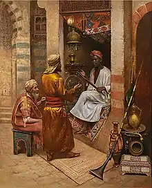 This is an incomplete list of artists who have produced works on Orientalist subjects, drawn from the Islamic world or other parts of Asia.[1] Many artists listed on this page worked in many genres, and Orientalist subjects may not have formed a major part of their body of work. For example, the list includes some portrait painters based in Europe who on occasion painted sitters wearing "oriental" costume. The list also includes Orientalist photographers, engravers and lithographers. The list includes links to the English Wikipedia, and where no English article exists, named artists are linked to foreign language versions of Wikipedia, where available.