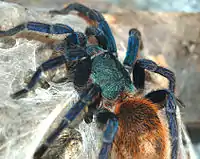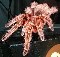 This page lists all described genera and species of the spider family Theraphosidae. As of August 2022, the World Spider Catalog accepted 1041 species in 156 genera:[1]