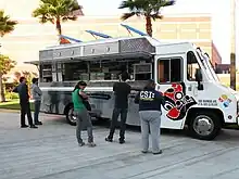 A food truck is a mobile venue that transports and sells food. Some, including ice cream trucks, sell frozen or prepackaged food; others resemble restaurants on wheels. Some may cater to specific meals, such as the breakfast truck, lunch truck or lunch wagon, snack truck, kebab trailer, break truck, or taco truck. This list includes notable food trucks companies, and is not a comprehensive list of all food trucks companies.