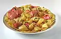 Silesia | A type of potato salad made with carrots, peas, ham, various sausages, pickled fish, boiled eggs, with olive oil or mayonnaise. |