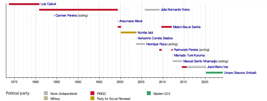 Umaro Sissoco EmbalóJosé Mário VazManuel Serifo NhamadjoMamadu Ture KurumaRaimundo PereiraHenrique RosaVeríssimo Correia SeabraKumba IaláMalam Bacai SanháAnsumane ManéCarmen PereiraJoão Bernardo VieiraLuís Cabral