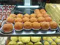 India | A dessert made with flour, soaked rice, and molten jaggery, fried with oil, and topped with sesame or poppy seeds. |