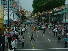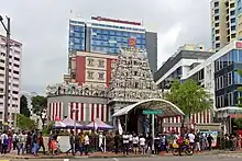Little India (Tamil: லிட்டில் இந்தியா) is an ethnic district in Singapore. It is located east of the Singapore River – across from Chinatown, located west of the river – and north of Kampong Glam. Both areas are part of the urban planning area of Rochor. Little India is commonly known as Tekka in the Indian Singaporean community.[1]