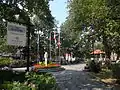 Parc du Portugal is located on Saint Laurent Boulevard between Marie-Anne Street and Vallières Street. The park with azulejos was founded in 1953,[2] created by landscape architect Carlos R. Martinez to honour the city's Portuguese community. It was renovated in 2003 to mark the fiftieth anniversary of the Portuguese community in Montreal.[3] It features a small drinking fountain by artist Rui Dias. Prominent Canadian poet and musician Leonard Cohen lived in a home adjacent to the park, on St. Dominique Street, for much of his life.