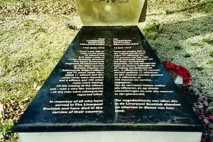 The memorial is made up of three parts - a carved stone, the inscription tablet in black marble and the flagstones around the memorial.
