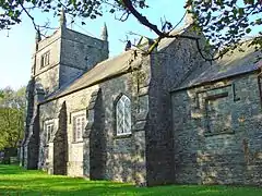 The present church is mid-Victorian, but there has been a Christian community in the village since at least the 6th century when Saint Brynach is believed to have come to the area. The parish includes a number of other settlements, particularly the village of Crymych and the hamlets of Glandwr and Pentre Galar.[10][11] In 1872 the parish covered 6,328 acres (2,561 ha).[12]