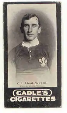 George Llewellyn Lloyd (1877 – 1 August 1957) was a Welsh international half-back who played club rugby for Newport and county rugby with Kent. He won 12 caps for Wales and captained the team on one occasion against Scotland.[3]