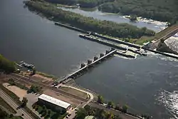 Lock and Dam 5A, Upper Mississippi River. View is upriver to the northwest.