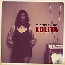 "Lolita" was premiered on 2day FM on the Kyle and Jackie O show on 26 July 2012, and the digital single and lyrics video was released the following day.[18][19] The artwork features a photograph of Jessica and Lisa's mother, Colleen, in her late twenties.[20][21] After coming across old photos of her, they found there was "something haunting about that particular shot".[21] The sepia toned picture has a curved white border surrounding the edge; in the photo, Colleen is seen standing against a blank wall with both hands behind her back; her hair is parted in the centre and sits on her shoulders and her eyes are directed to her left; she is wearing a buttoned down, long sleeve pleated shirt, underneath a short black dress; the loudspeaker to her bottom-left has a torn white patch on the grille. Above the speaker are the words "The Veronicas" apexing "Lolita", written in black and red capital letters, respectively in impact font. A remix by DJ Connor Cruise was published on SoundCloud on 31 July.[22][23]