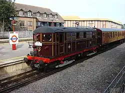 The fleet consisted of several Mark 1 and Mark 2 vehicles, and eight former British Rail Class 438 electrical multiple unit trailer set vehicles. The two coaches bought in the late 1980s were initially painted in red, white and blue of LUL.[1][2] After the acquisition of more coaches in 1992, all vehicles were painted in the maroon livery of the Metropolitan Railway. They were normally based at West Ruislip depot.[3]