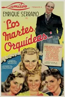 Los martes, orquídeas (On Tuesdays, Orchids) is a 1941 Argentine black and white comedy film directed by Francisco Múgica and starring Mirtha Legrand, Enrique Serrano, Juan Carlos Thorry and Nuri Montsé. It won the Argentine Best Picture award for 1941. It was remade as the Hollywood classic You Were Never Lovelier (1942), starring Fred Astaire and Rita Hayworth.[2][3]