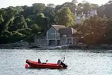 Boathouses at Greatwood, photographed in 2009. The former guest house can be seen among the trees