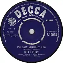 - ↑ "Billy Fury - I'm Lost Without You". 45cat. Retrieved 2021-11-08.