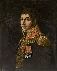 Promoted to Général de brigade on 24 December 1805, Carrière was made first aide-de-camp to Marshal Murat, and tasked with taking possession of Wesel on 9 March 1806. He served in Prussia and Poland in 1806/7, fighting at Jena on 14 October 1806. On 16 October, he took provisional command of a light cavalry brigade in place of General Milhaud, serving at Prenzlau on 28 October before returning to his role on Murat's staff. He fought at Eylau, and in front of Danzig on May 14 1807, where he commanded the light cavalry of I Corps in place of General La Houssaye.[2] Ordered to stop a force of 10,000 men marching from Pillau, he attacked and destroyed this body, taking their artillery and a large number of prisoners. On the same day he was made a Commander of the Légion d'Honneur and a Knight of the Order of the Iron Crown.[1] He commanded the I Corps reserve cavalry at Friedland and contributed to the success of the day.[1]
