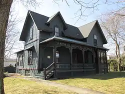 The Louis Kotzow House is a historic house in Pawtucket, Rhode Island. It is a 1+12-story wood-frame structure, laid out in an L shape. Its exterior is visually busy, with numerous projecting dormer and gable sections, and elaborate woodwork, including bracketed eaves and applied Stick style woodwork on a projecting bay section. Its porch has a delicate jigsawn railing, with a wooden frieze and decorative arches above. The house, built c. 1875, is one of two (the other is the nearby Scholze–Sayles House) built by the German Land Cooperative Association, which sought to create a German-speaking enclave in the area.[2]
