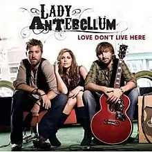 "Love Don't Live Here" is the debut single recorded by American country music trio Lady Antebellum, released in October 2007 from their self-titled debut album. Although the group had charted along with pop artist Jim Brickman on his 2007 single "Never Alone", this song serves as Lady Antebellum's first release to country radio. It was written by the group's three members (Hillary Scott, Charles Kelley, and Dave Haywood), and features Kelley on lead vocals. The song peaked at #3 on the Billboard Hot Country Songs chart dated for the week of June 14, 2008.
