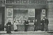 The power plant behind Llauder's periodicals[157] was his publishing house La Hormiga de Oro, founded in 1887;[73] of three similar Carlist enterprises in Catalonia it was the most stable and the most durable one.[158] With a dedicated book shop serving as a front-end customer interface,[159] the conglomerate demonstrated that Llauder was fully conscious of the commencing mass culture era. Its business soundness is unclear. It remains striking that Llauder, himself a solitary leading a modest life,[160] between 1871 and 1902 sold real estate inherited from his ancestors.[161] It seems that a fortune, accumulated by nine generations of the Llauder family, has ultimately been spent as financial reserve sustaining Carlist propaganda machinery in Catalonia.[162]