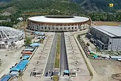 The Lukas Enembe Stadium, formerly known as Papua Bangkit Stadium (Rising Papua Stadium), is a multi-purpose stadium located within the Lukas Enembe Sports Complex in Nolokla, Jayapura Regency, Papua, Indonesia.[1][2][3] Located between the Cyclops Mountains and Lake Sentani, the stadium takes up 71,697 square meters of land and can accommodate more than 40,263 spectators.[4] Named after current governor of Papua Lukas Enembe, it was built as the main venue for the 2021 Pekan Olahraga Nasional.