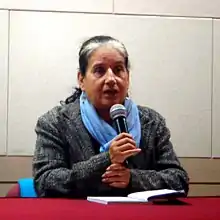 Lupe Cajías de la Vega (born 1955) is a Bolivian journalist, historian, and writer.[1][2][3] Cajías has focused her career on journalism, though she is also the author of books such as Historia de una Leyenda, vida y palabra de Juan Lechín Oquendo (1988) and Valentina. Historia de una rebeldía.[2] Likewise, her career has been recognized with the UNICEF national award in 1986,[1] as well as the Erich Guttentag Award for the novel Valentina. Historia de una rebeldía in 1996[2] (this award was replaced by the National Novel Award two years later).