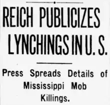 61. 1 2 "Reich Publicizes Lynchings in U.S.". Washington, D.C.: Evening Star. April 15, 1937.