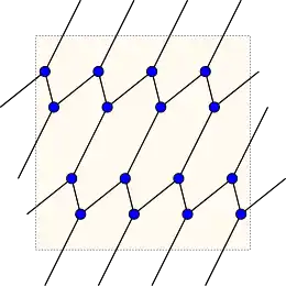The Möbius–Kantor graph cannot be embedded without crossings in the plane; it has crossing number 4, and is the smallest cubic graph with that crossing number.[2] Additionally, it provides an example of a graph all of whose subgraphs' crossing numbers differ from it by two or more.[3] However, it is a toroidal graph: it has an embedding in the torus in which all faces are hexagons.[4] The dual graph of this embedding is the hyperoctahedral graph K2,2,2,2.