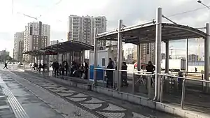 M.K. Atatürk Spor Salonu is a light-rail station on the Karşıyaka Tram line of the Tram İzmir network in Turkey.[1] The station consists of an island platform serving two tracks. M.K. Atatürk Spor Salonu is located on Caher Dudayev Boulevard adjacent to the Karşıyaka Arena and Mavibahçe Shopping Center in Mavişehir, Karşıyaka. The station was opened on 11 April 2017, along with the entire tram line.[2]