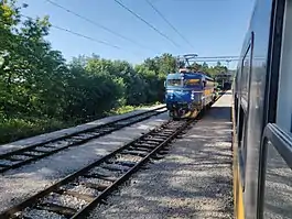 The Rijeka–Šapjane−State border railway, officially designated the M203 railway is a 30.9-kilometre (19.2 mi) long, single-tracked railway line in Croatia, which is operated by HŽ Infrastruktura.[1] M203 connects Rijeka to the Slovene railway network north of Šapjane and to the Zagreb via M202 east of Rijeka.[maps 1] It is electrified with 25 kV AC from Rijeka to Šapjane and 3 kV DC from Šapjane to the national border. Until 2014, it was classified as M502.[2]