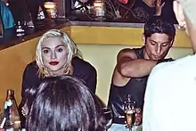 Christopher Glazek explains: "Madonna has been intimately connected to a wide community of gay men for decades, as an artistic collaborator, as a political ally, as an employer, as a friend, and as a sister".[4] Some examples include her first book Sex when collaborated with a gay photographer, and included gay models.[6] At some stage of her career, she repeated in interviews that her best friends are gay.[7] After David Collins's death, Madonna penned a letter describing his influence on her life.[8] By the end of the 1980s and early 1990s, media "romantically linked" her name with various women, including Sandra Bernhard, Ingrid Casares, and model Jenny Shimizu,[9] nor confirmed or denied by Madonna. In 1991, Madonna told to The Advocate that she believed "everybody has a bisexual nature".[10]