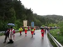 Religious rites are held on 27 April, officially recognized as the patronal holy day of Avezzano. Every year the statue of the Virgin is taken in procession going down the Via Crucis of Mount Salviano, and then reaching the Cathedral of St. Bartholomew along two urban routes which alternate from year to year, according to the confraternity organizing the rite.[25][26]
