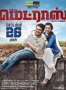 Madras is a 2014 Indian Tamil-language political drama film written and directed by Pa. Ranjith. The film stars Karthi, Catherine Tresa (marking her debut in Tamil cinema) and Kalaiyarasan while Charles Vinoth, Riythvika, V. I. S. Jayapalan, Poster Nandakumar and Mime Gopi play supporting roles. Set in the backdrop of North Madras, Kaali (Karthi) and his friend Anbu (Kalaiyarasan), gets embroiled in a brutal political rivalry, between two factions of a political party after laying claim to a wall.