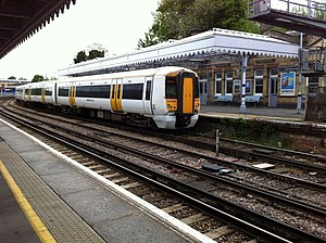 Maidstone West railway station is one of three railway stations which serve the town of Maidstone, in Kent, England. It is on the Medway Valley Line, 42 miles 36 chains (68.3 km) from London Charing Cross via Strood and situated between Maidstone Barracks and East Farleigh. The station and all trains that serve the station are operated by Southeastern.
