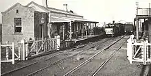 The station is susceptible to floods. In the 1955 floods, the signalbox was washed away with its replacement constructed on stilts. This closed on 27 October 1990 and has been leased to a model railway club.[5][6][7] The high water marks have been marked on the building on Platform 1. Flood gates have been installed at the northern end of the platforms. A new signal box opened opposite the station on 17 December 1990.[8]