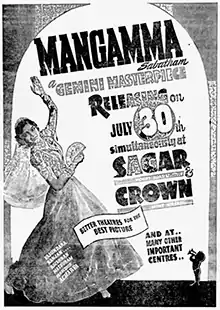Mangamma Sabatham (transl.Mangamma's vow) is a 1943 Indian Tamil-language film, starring Vasundhara Devi, Ranjan, N. S. Krishnan and T. A. Mathuram. The film was produced by S. S. Vasan and directed by T. G. Raghavachari, credited as Acharya.[1] The film was remade in Hindi and Telugu as Mangala (1950 and 1951), in Sinhala as Mathalan (1955) and again in Telugu as Mangamma Sapatham (1965).