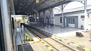 The station building was initially built in Indies Empire style. The original building was partially collapsed due to an earthquake on 15 May 1923 and later was torn down and rebuilt due to safety hazard.[3] The only original part of the station that survives is the platform canopy.