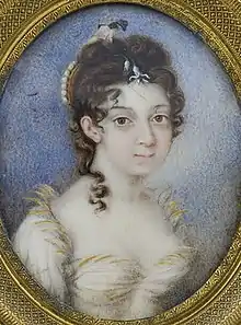 During this interim, she met José de San Martín, one of several generals from the Peninsular War who had recently moved to Buenos Aires. Most historians consider that they developed a love at first sight; however, the aristocratic stature of the Escalada, the social customs of the time and San Martín's own political agenda would suggest instead that it could be an arranged marriage between San Martín and the Escalada.[1] With this marriage, the Escalada arranged ties with a general of a promising career, and San Martín could leave the social isolation of his recent move, getting ties with the aristocracy of the city.[2] Even so, San Martin had conflicts with his political family, by rejecting their aristocratic ways. A dinner with Bernardino Rivadavia ended in an incident between them.[3]